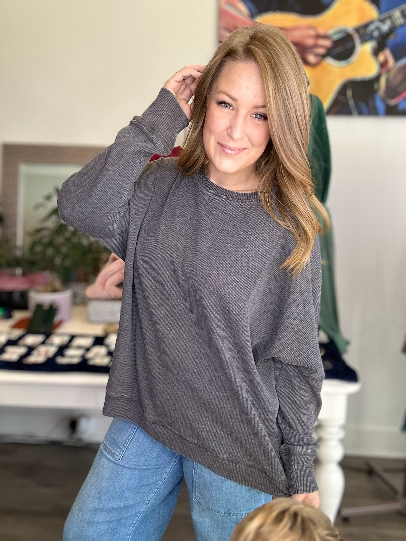 Charcoal Washed Waffle Long Sleeve