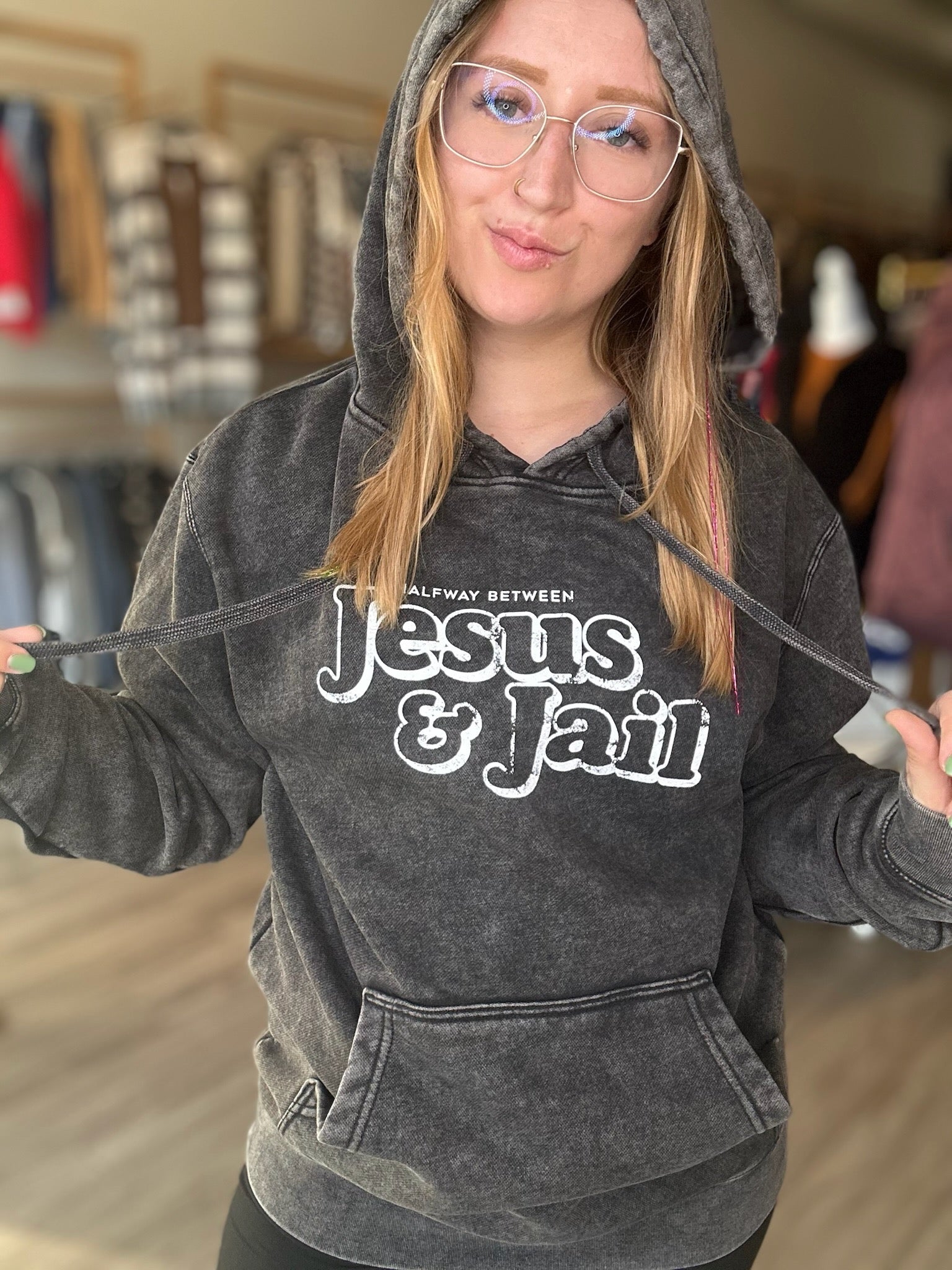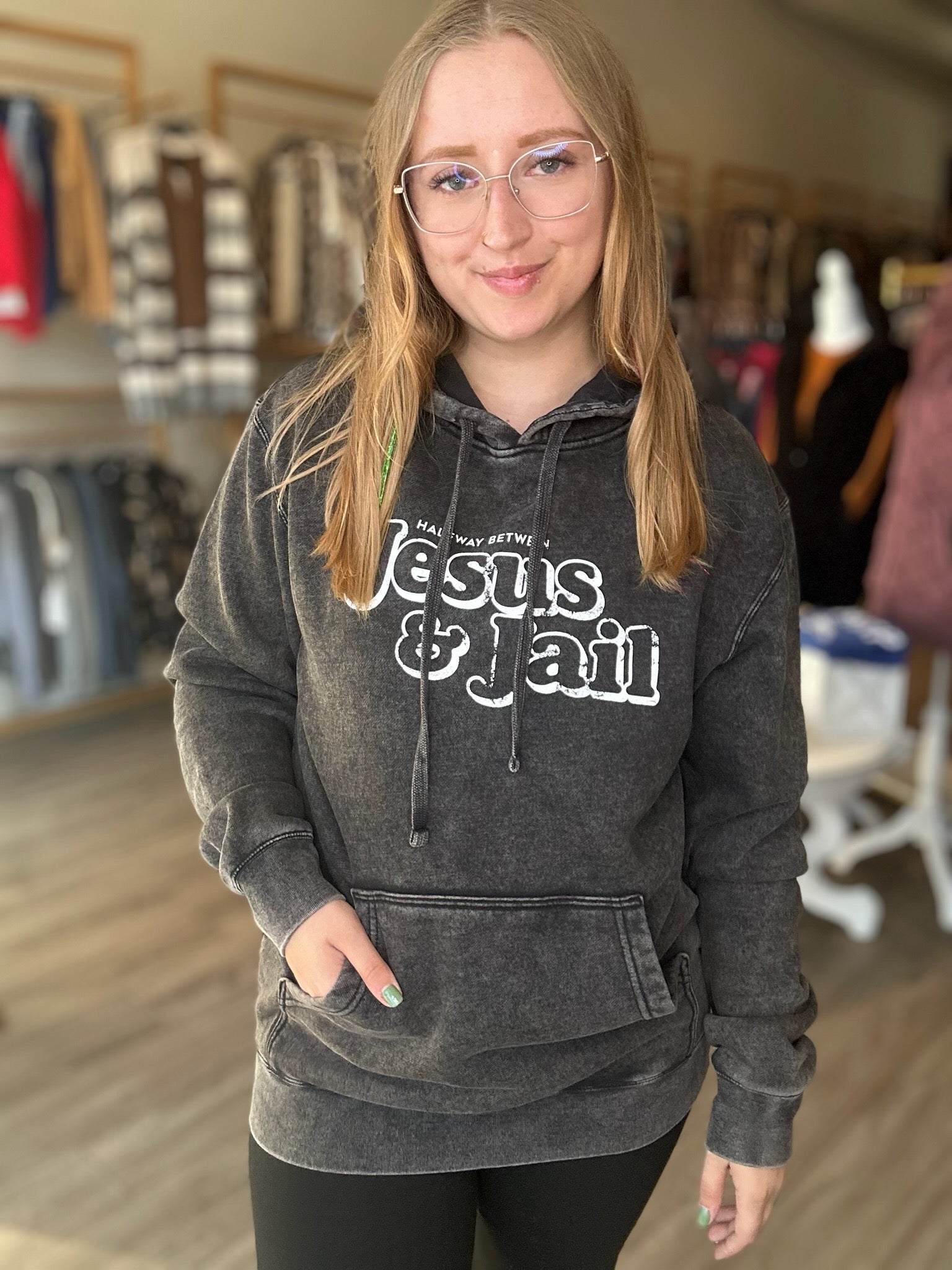 Mineral Wash Black J & J Hoodie