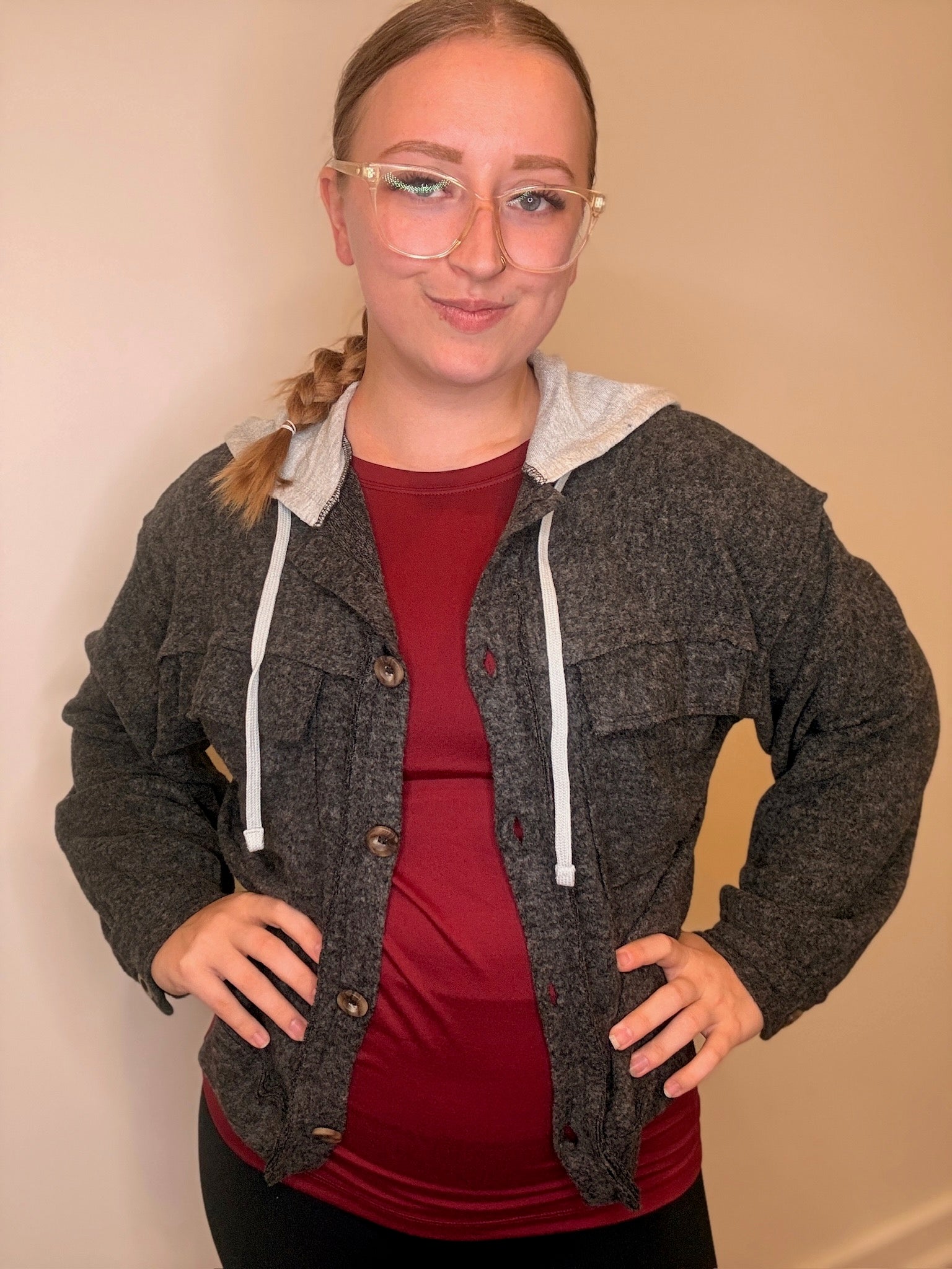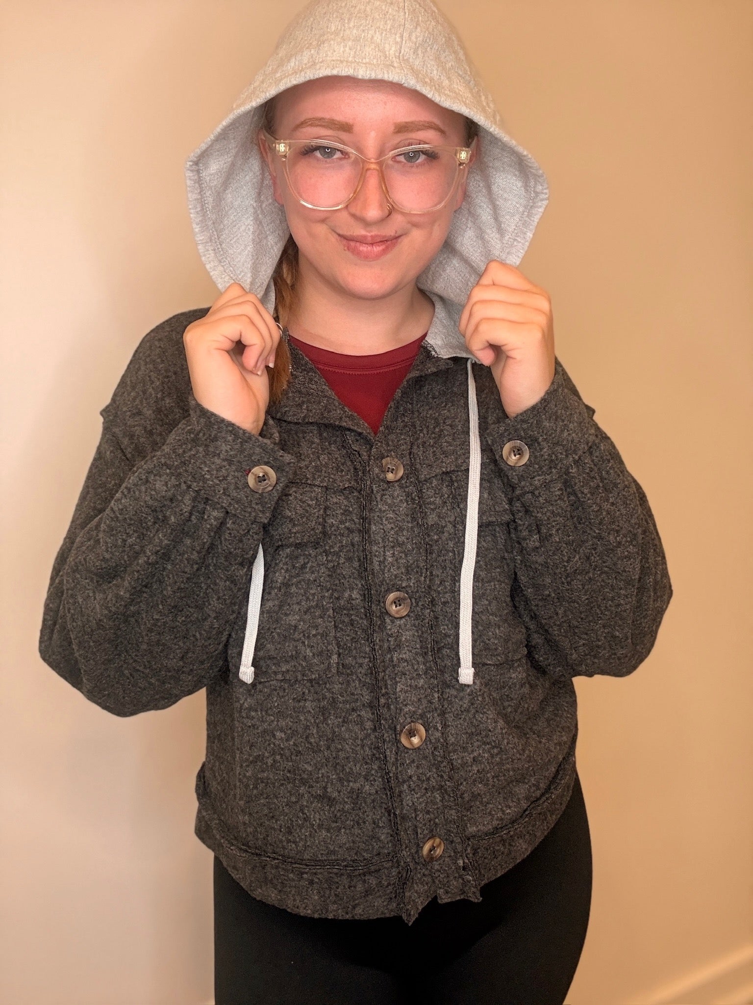 • Women's Brushed Hacci Hooded Button Down Shacket