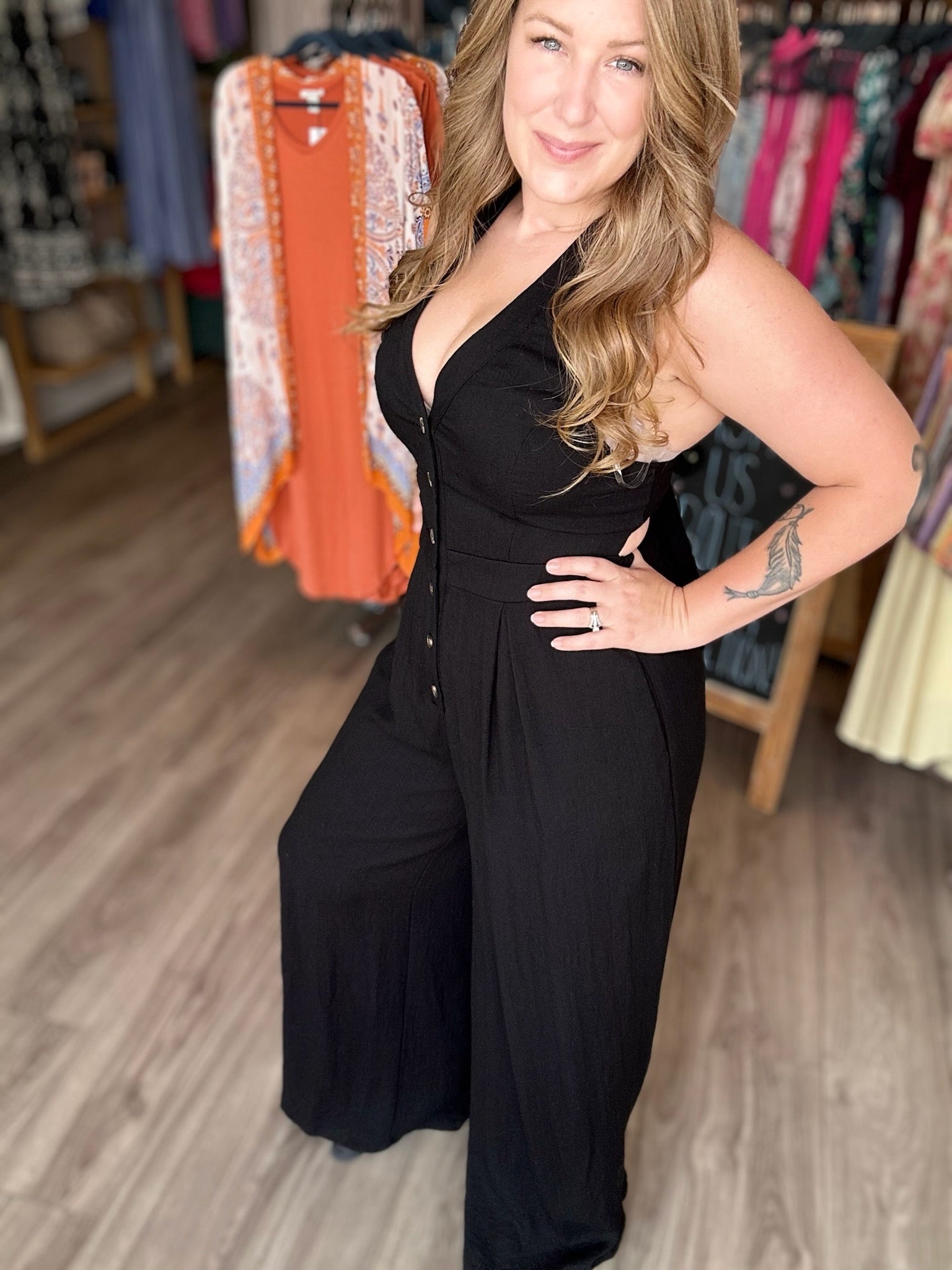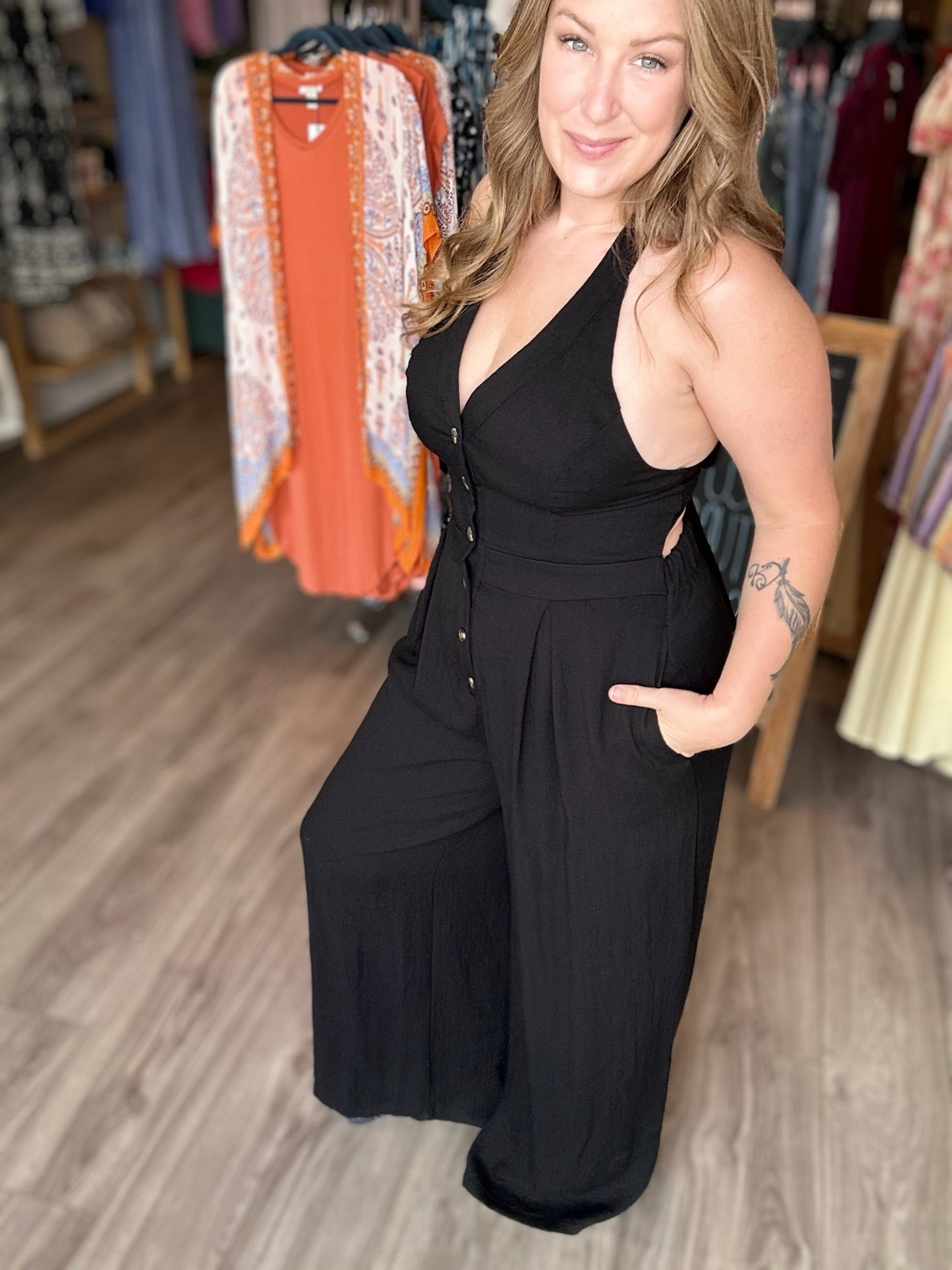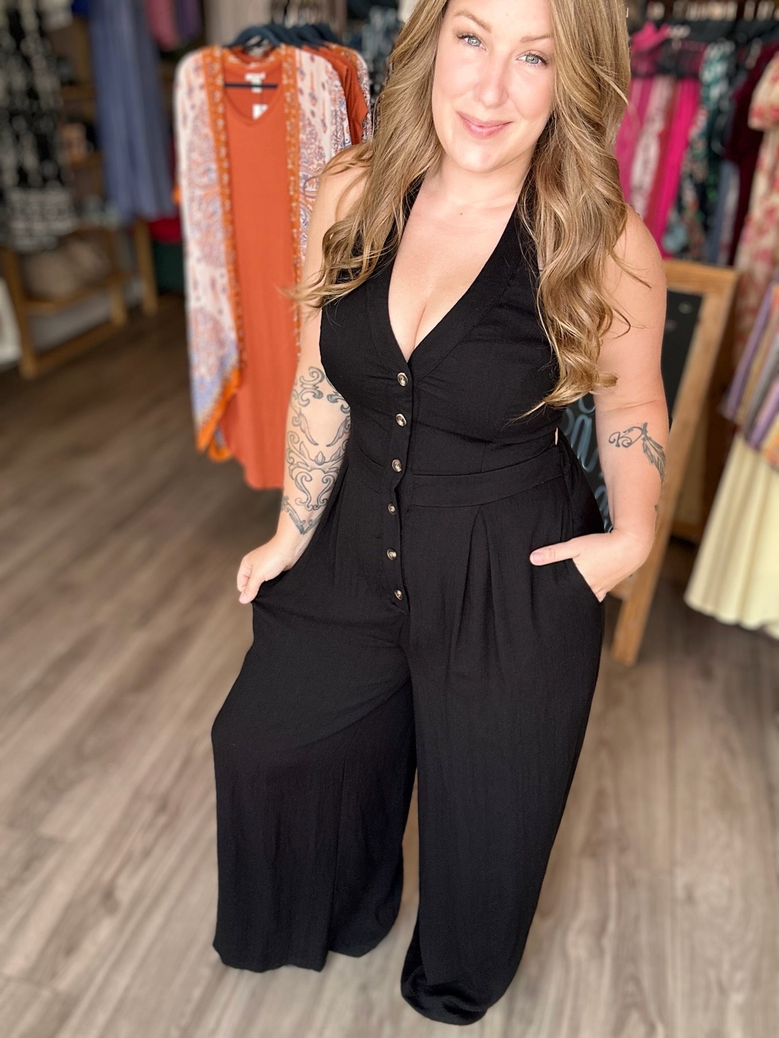 Black Halter Button Front Jumpsuit