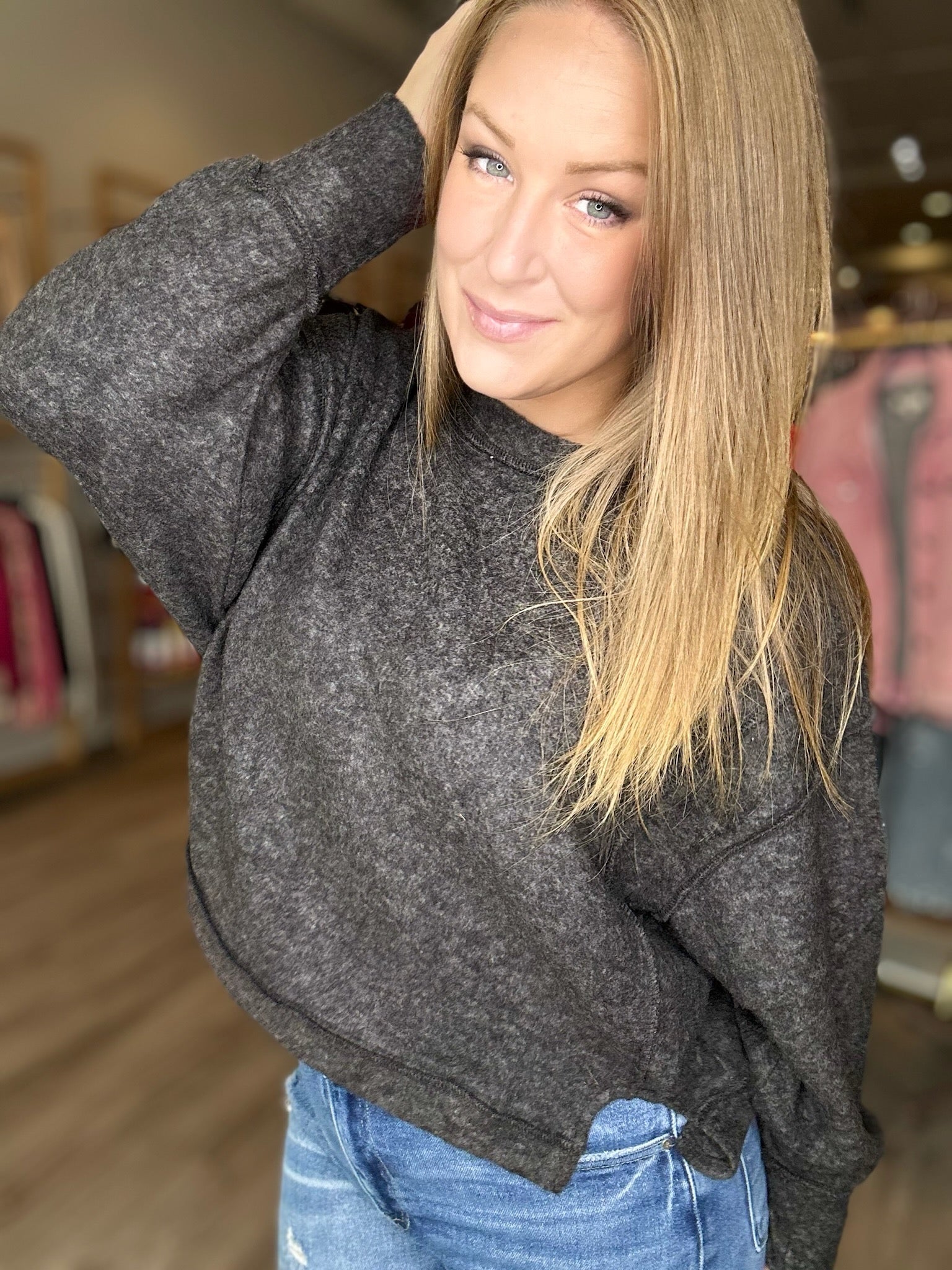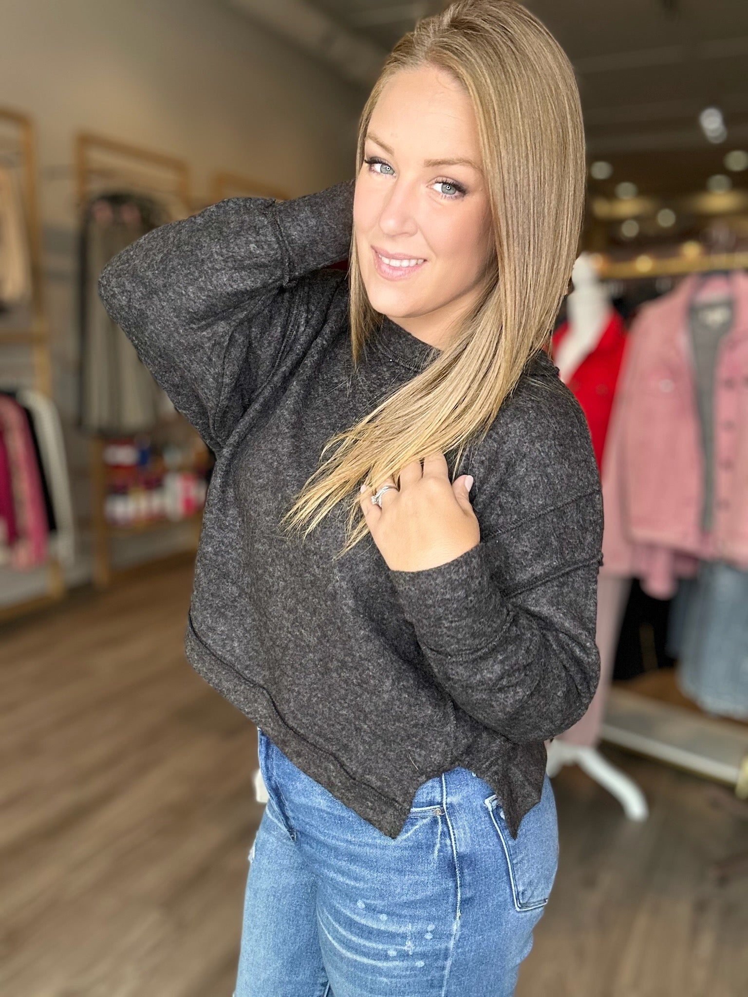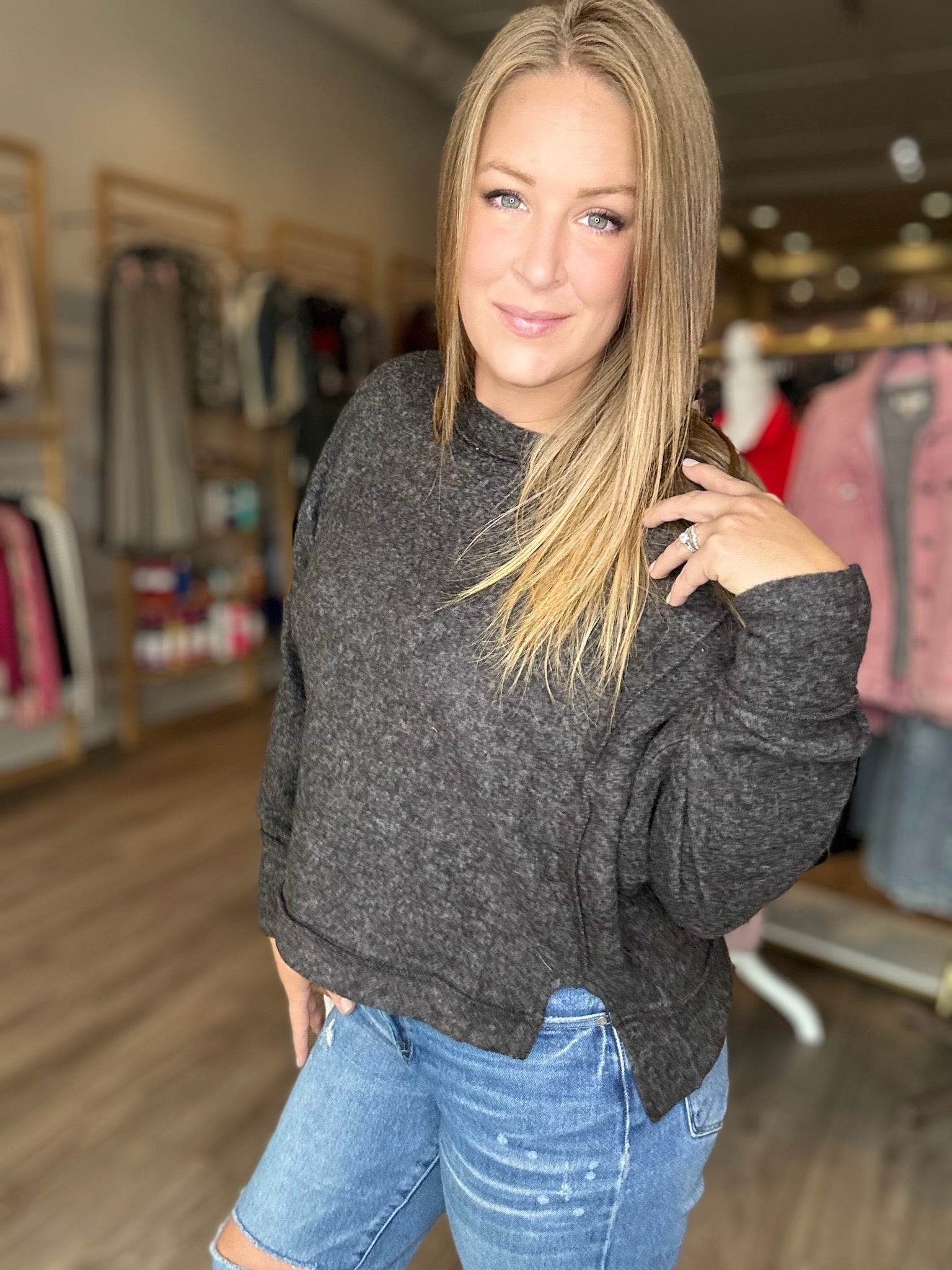 Women's Brushed Hacci Oversized Hi-Lo Exposed Seam Sweater