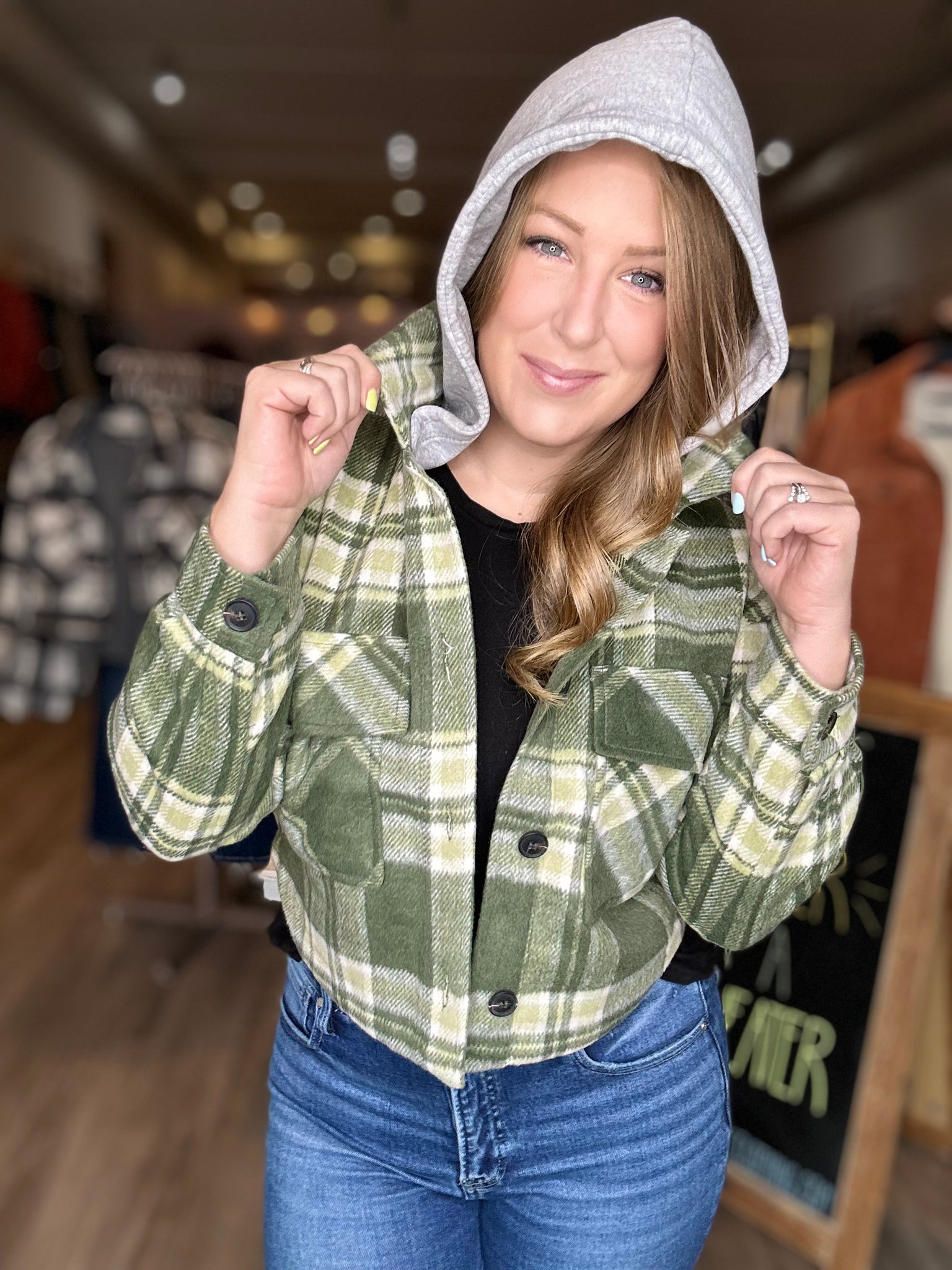 Hunter Green Plaid Detachable Hood Shacket