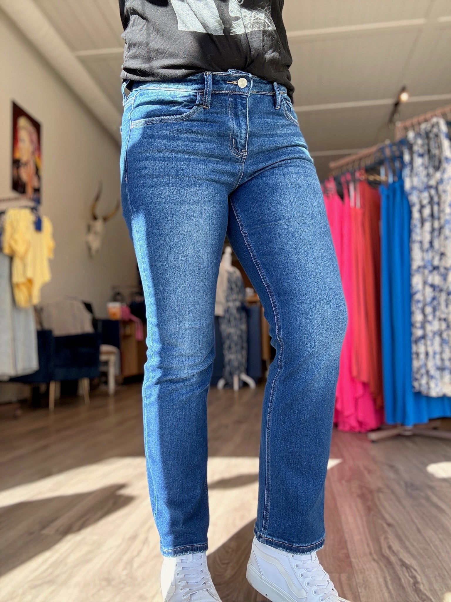 Women's Lovervet Mid Rise Dark Wash Ankle Slim Straight Leg Jeans