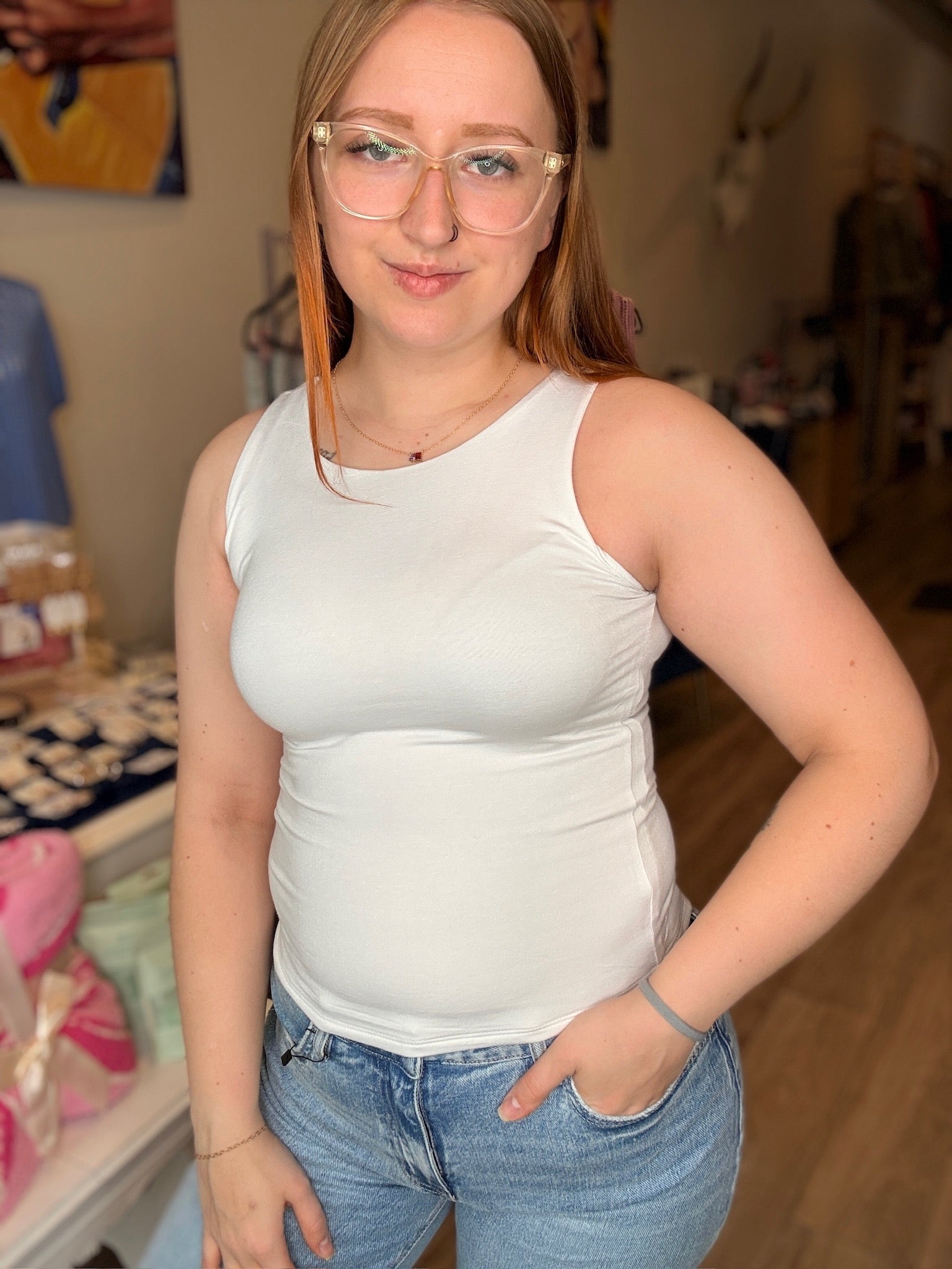 White Round Neck Layered Tank Top